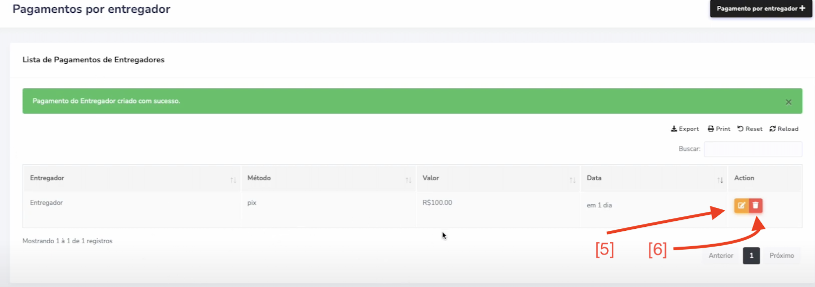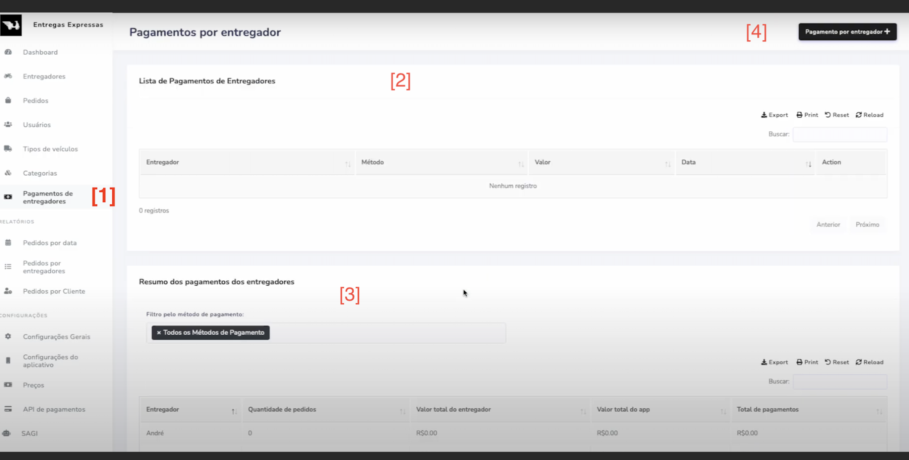 [4]. PAGAMENTOS POR ENTREGADOR +, caso queira fazer mais registros de pagamento.