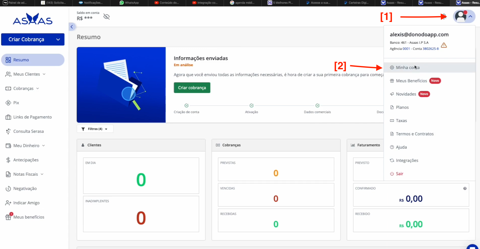 2.PASSO: Ir em MINHA CONTA na ASAAS.