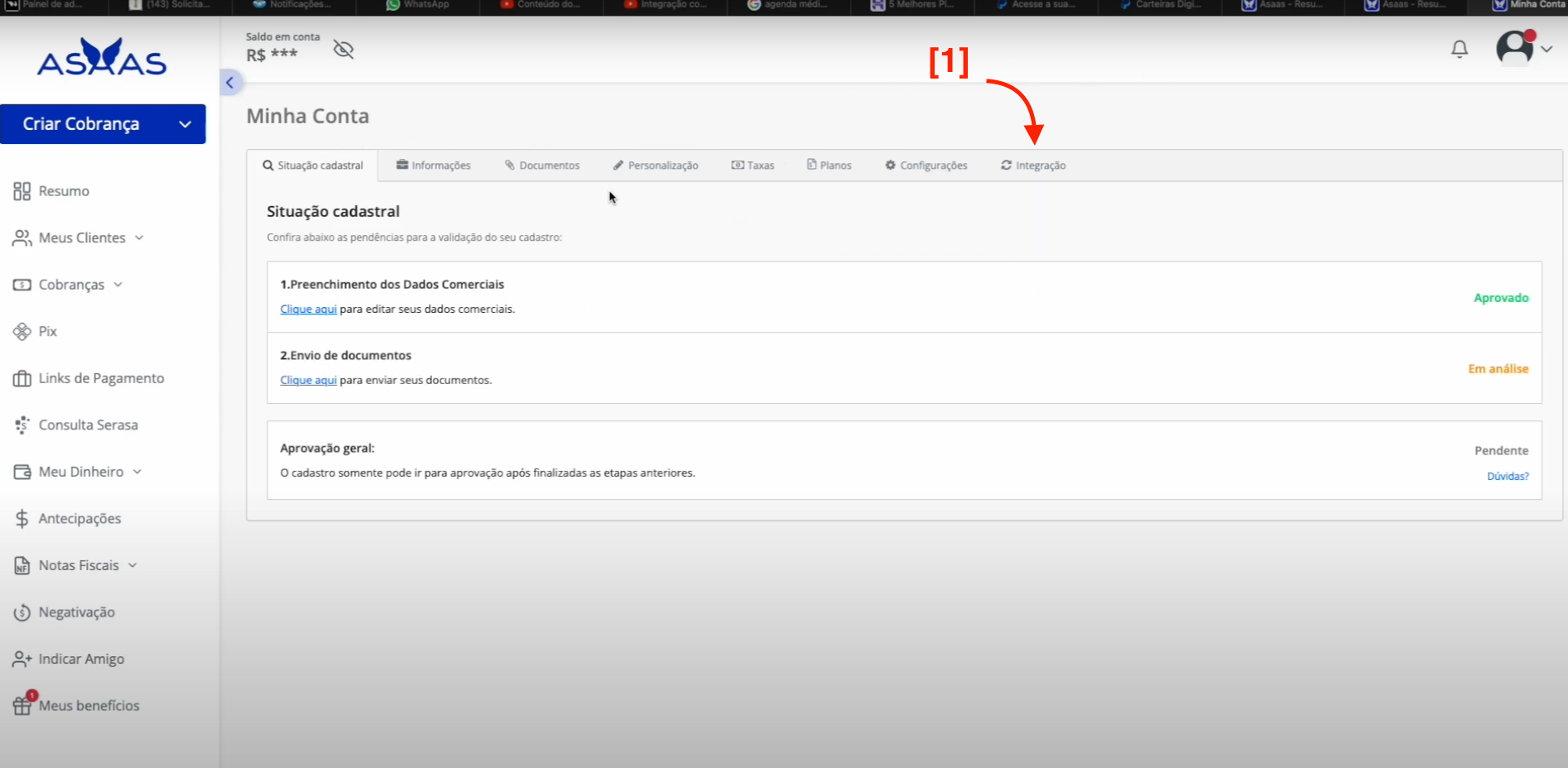 OBS: Muito importante você ter sua conta verificada e aprovada pela ASAAS.