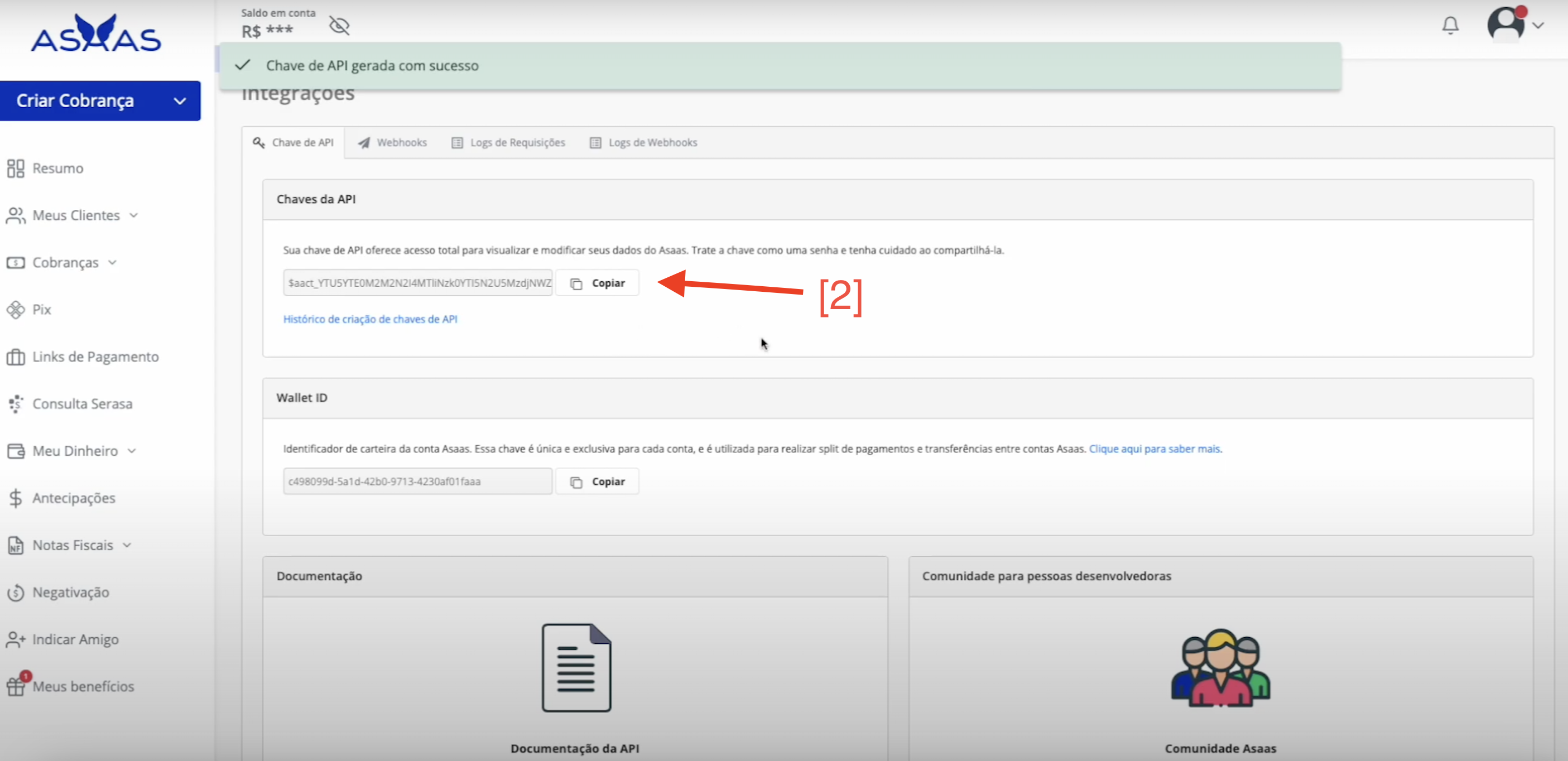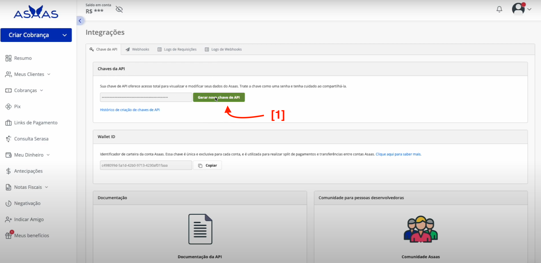 [1]. Clicar em GERAR NOVA CHAVE DA API