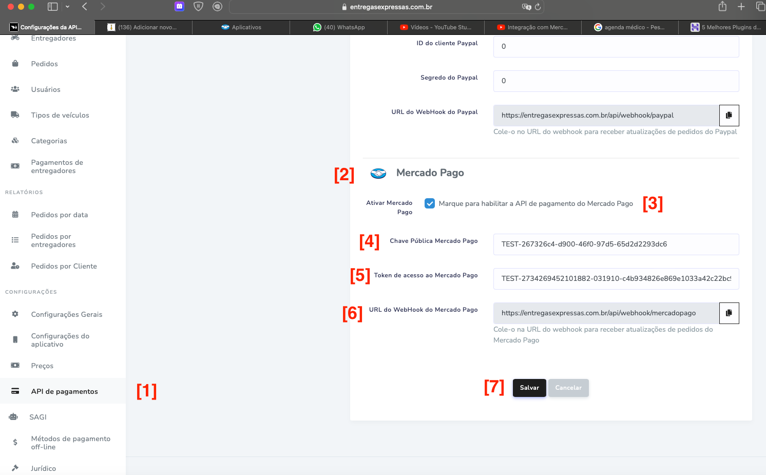 OBS: Não esqueça de clicar em SALVAR nos lugares que aparece essa opção, tanto em sua plataforma de entregas como no mercado pago!
