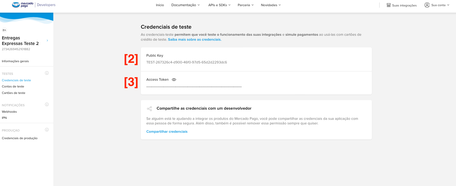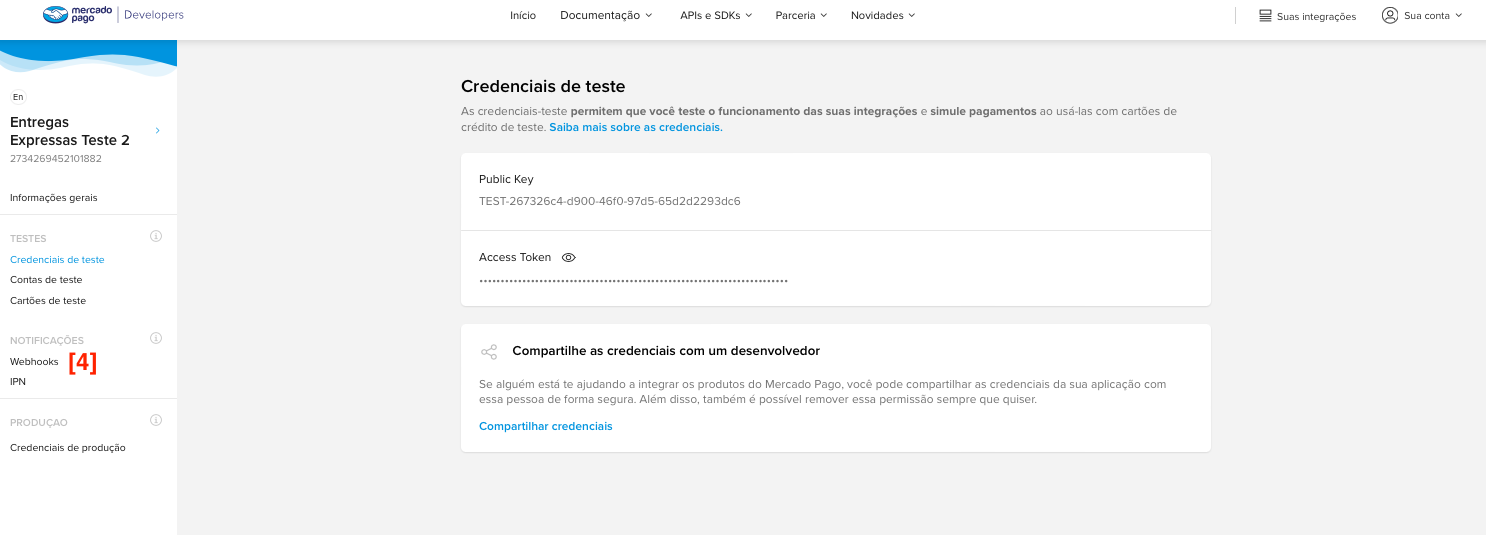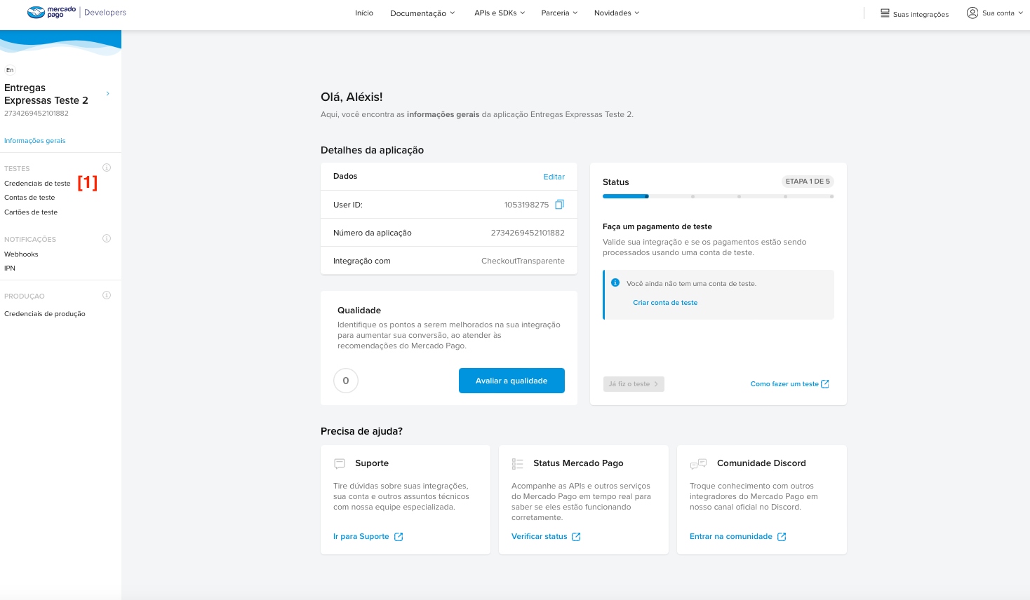5.PASSO: Com sua aplicação criada, em sua tela do Mercado Pago.