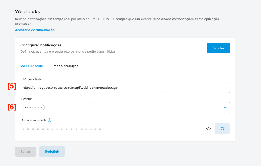 [6]. Campo onde iremos copiar a URL DO WEBHOOK e colar no mercado pago.