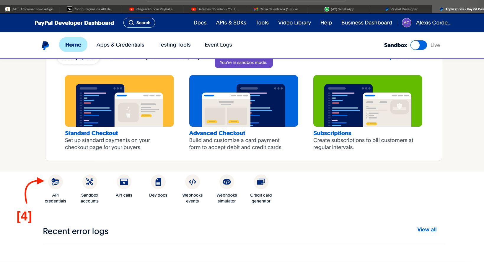 [1]. Vamos em BARRA LATERAL e encontrar por API DE PAGAMENTOS