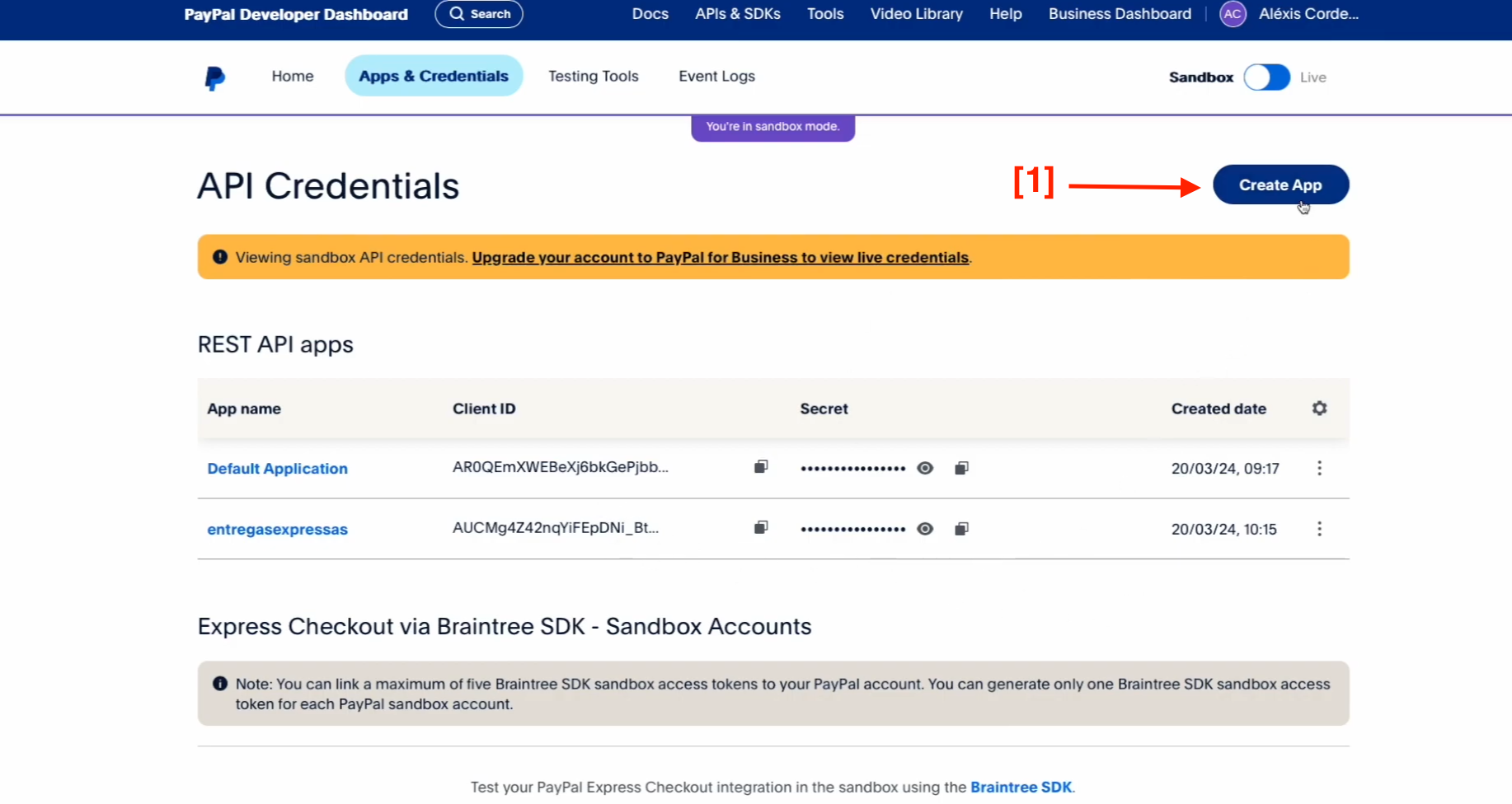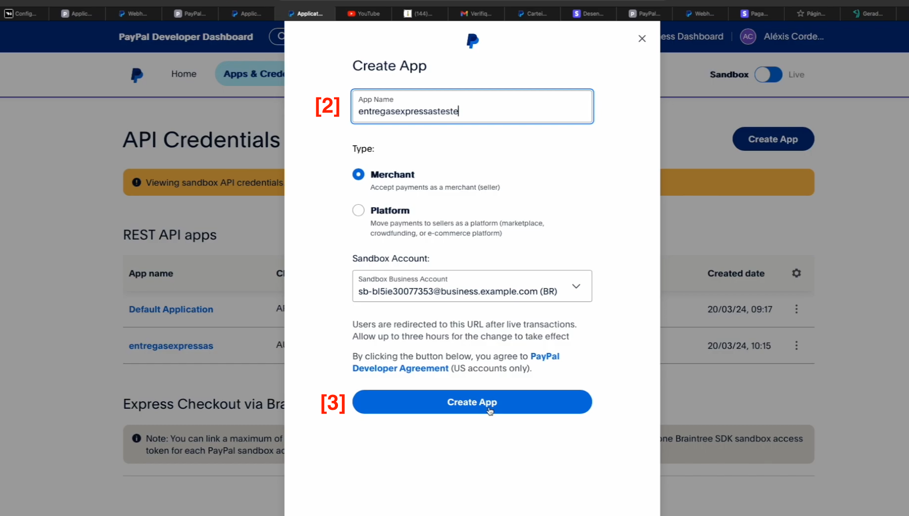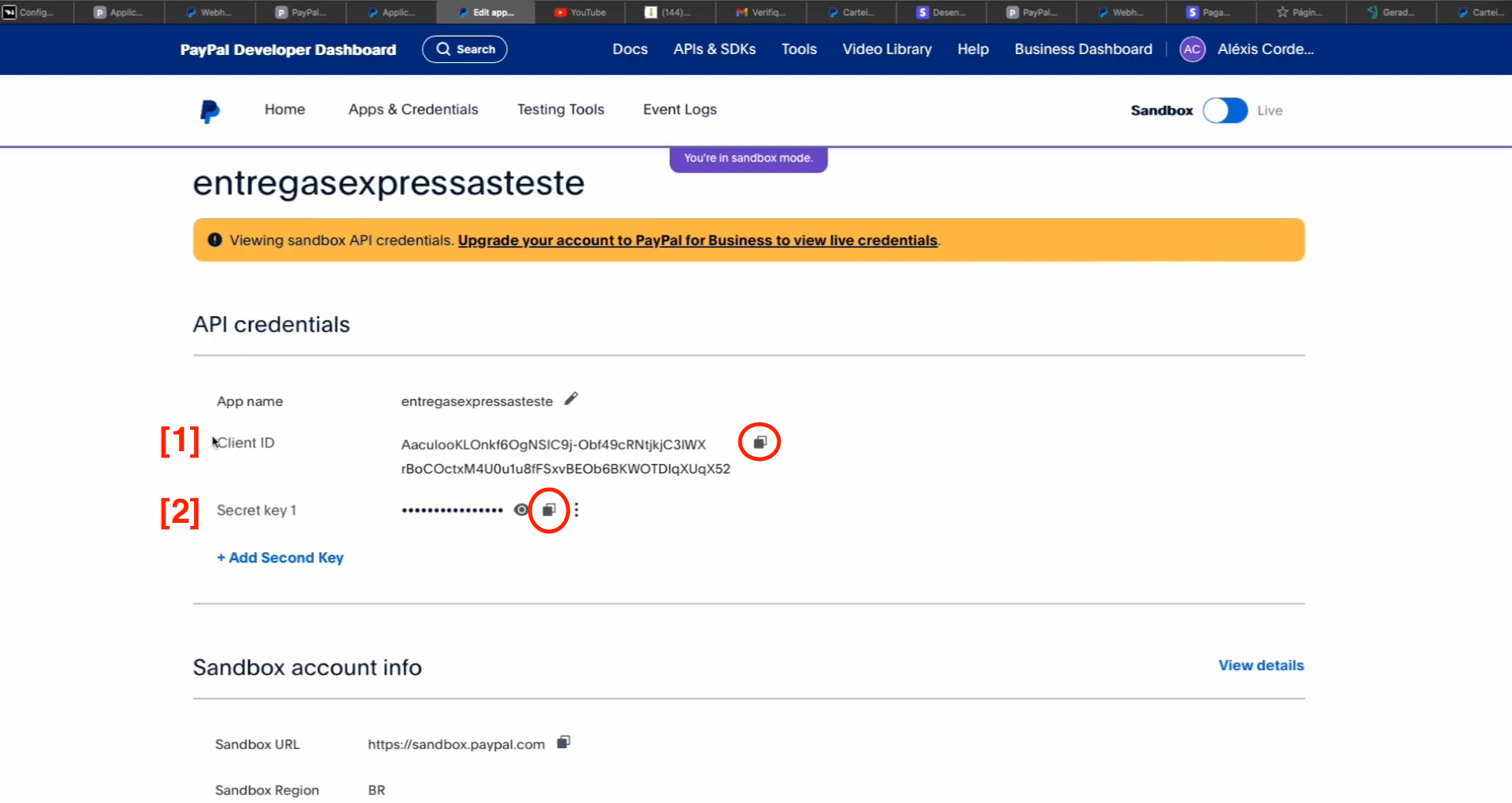 [1]. CLIENT ID, Você irá COPIAR esse CAMPO e COLAR no campo da Plataforma de entregas ID DO CLIENTE PAYPAL[ITEM[4]].