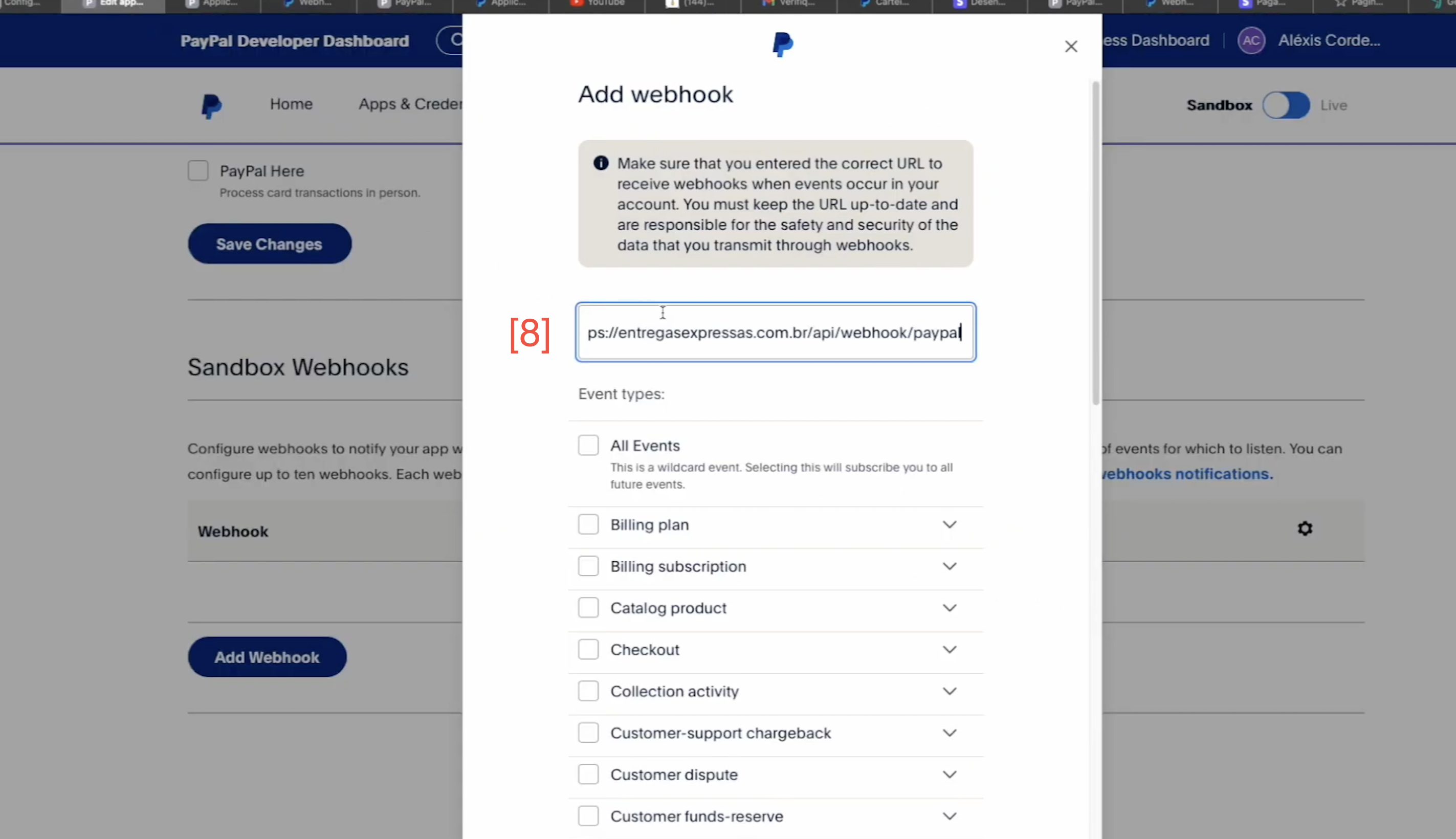 [6]. URL DO WEBHOOK DO PAYPAL, iremos COPIAR e utilizar esse link para realizar o webhook de pagamentos.
