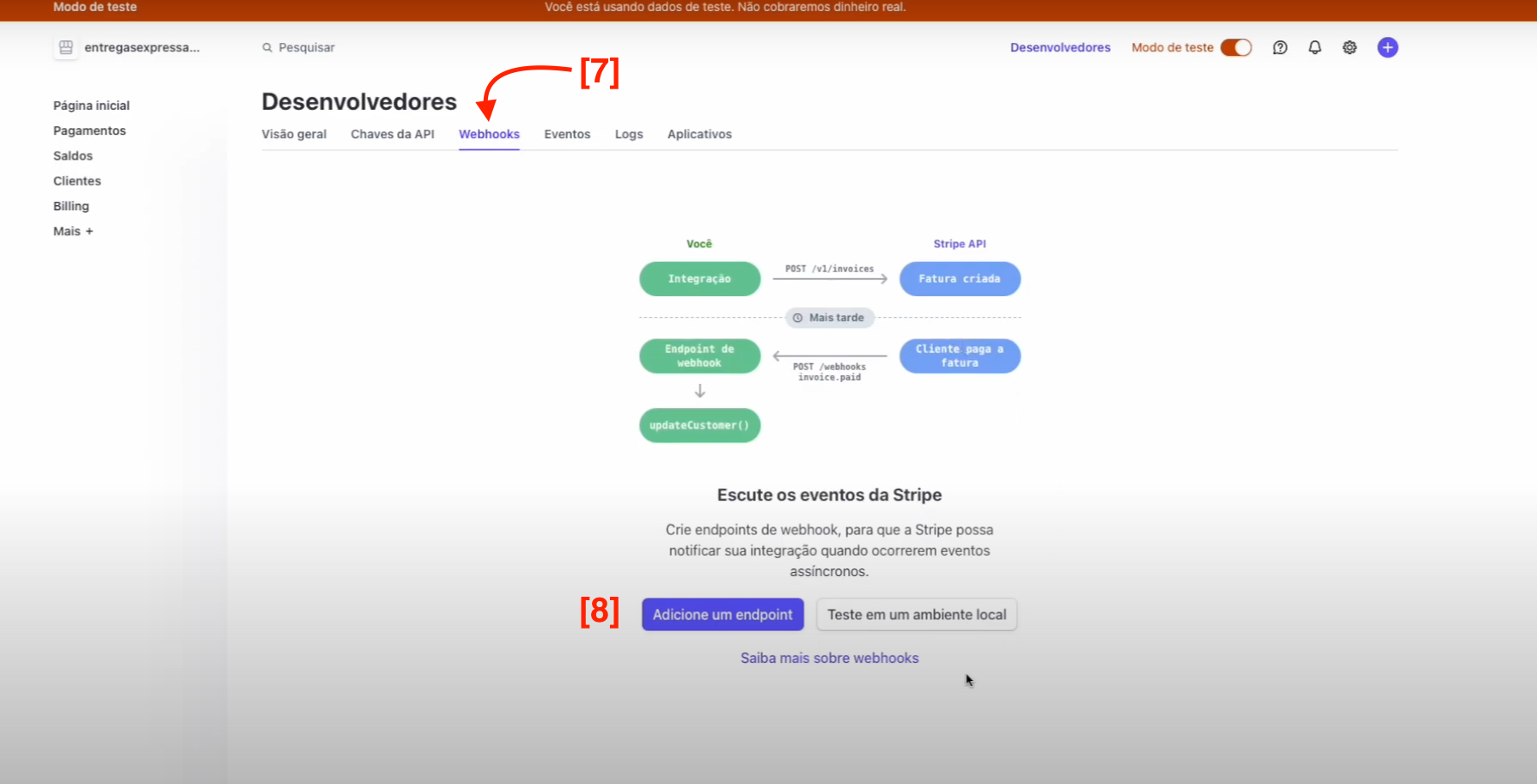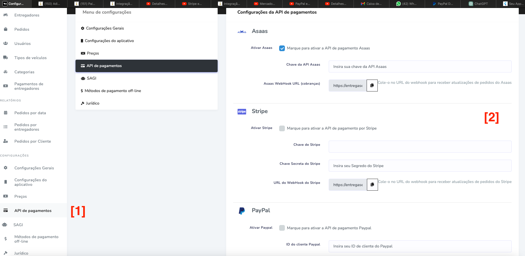 1.PASSO: Localizar onde iremos realizar a integração na sua PLATAFORMA DE ENTREGAS e em sua conta STRIPE.